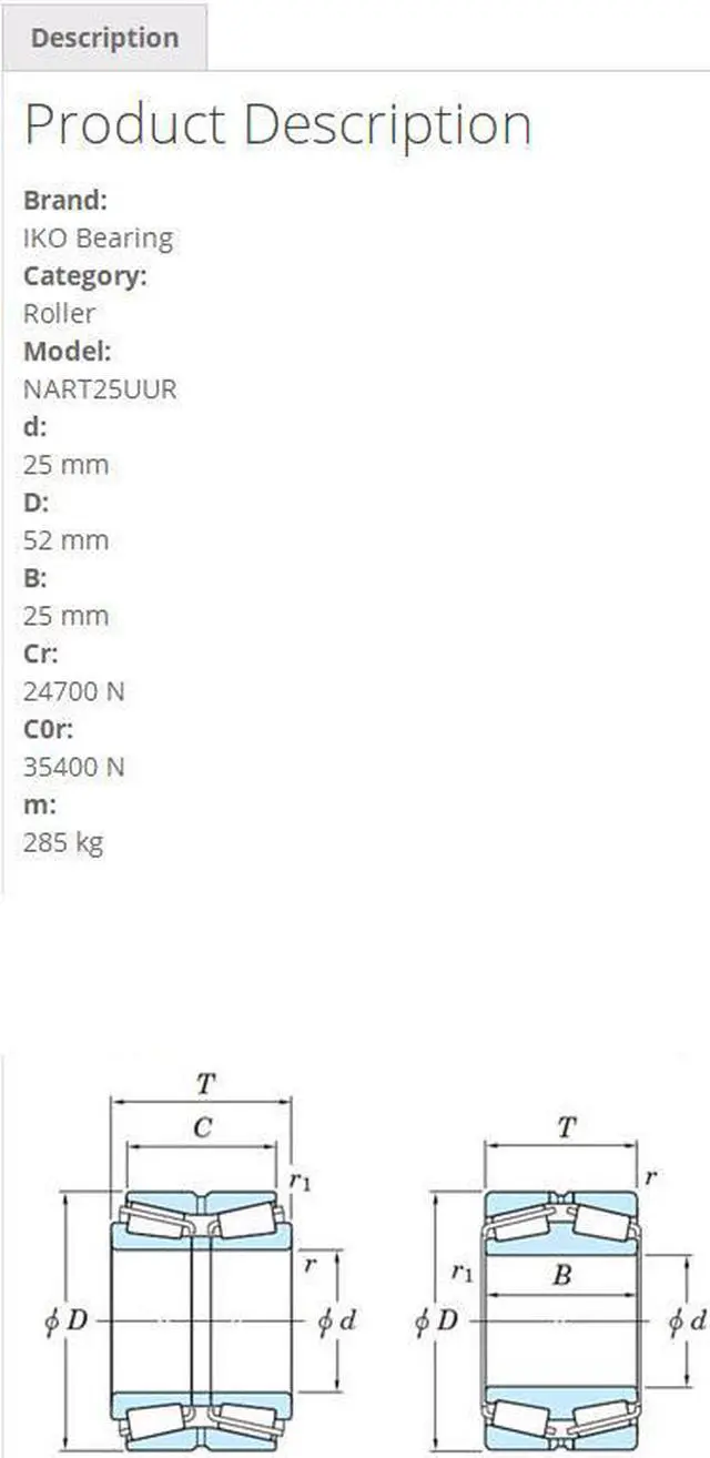 IKO NART25UUR Needle Roller Bearing,Outer ring 52x25x25mm