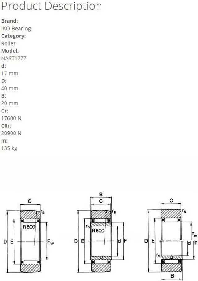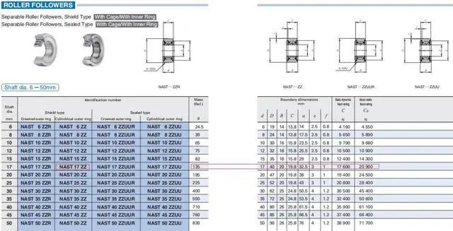 IKO NAST17ZZ Roller Followers, With Cage,Inner Ring 40x17x20mm