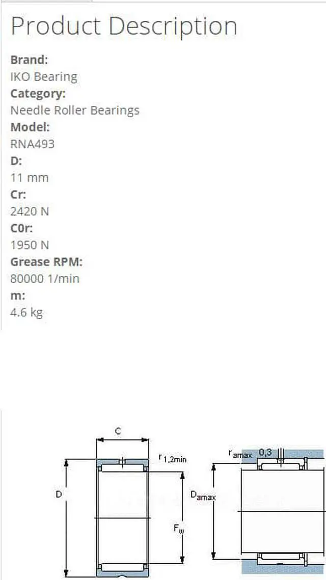 IKO RNA493 Needle Roller Bearings 11x5x10mm