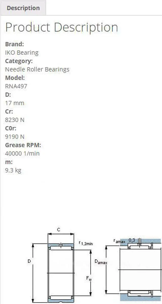 IKO RNA497 Needle Roller Bearings 17x9x10mm