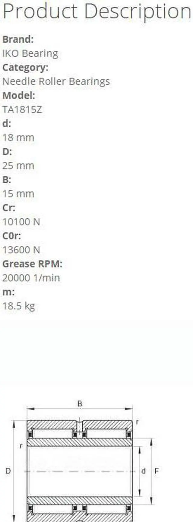 IKO TA1815Z Needle Roller Bearings 25x18x15mm