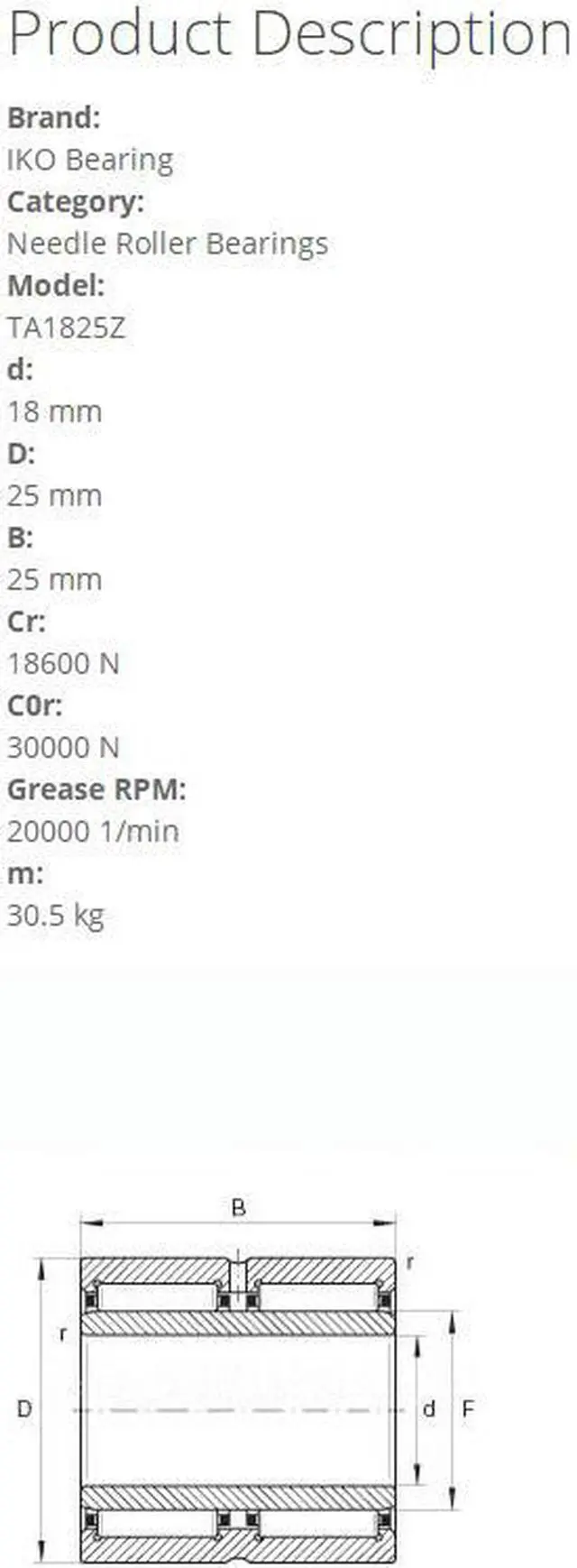 IKO TA1825Z Needle Roller Bearings 25x18x25mm