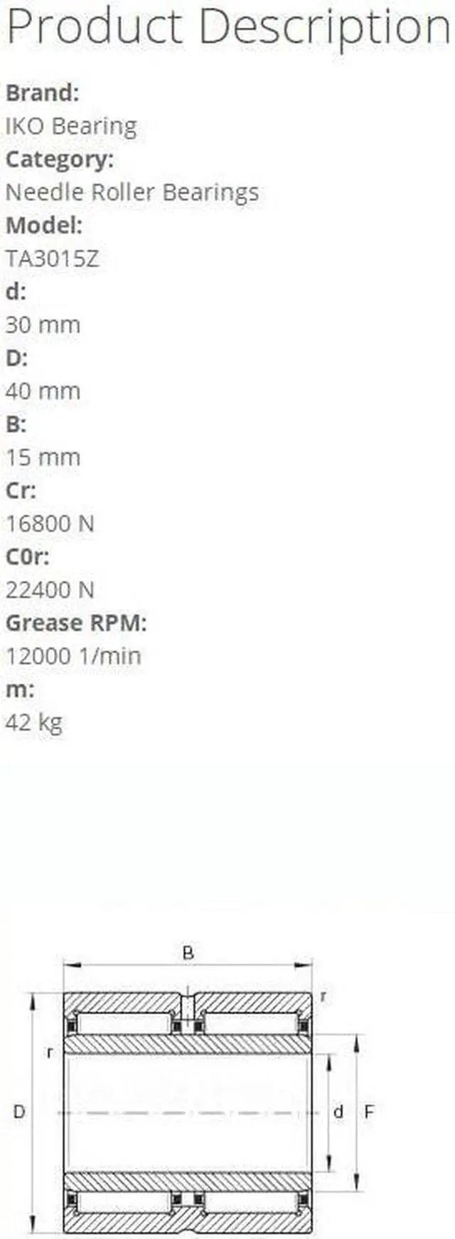 IKO TA3015Z Needle Roller Bearings 30x40x15mm