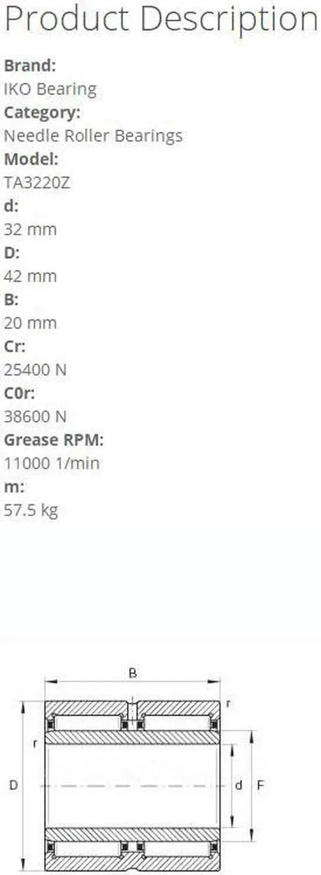 IKO TA3220Z Needle Roller Bearings 32x42x20mm