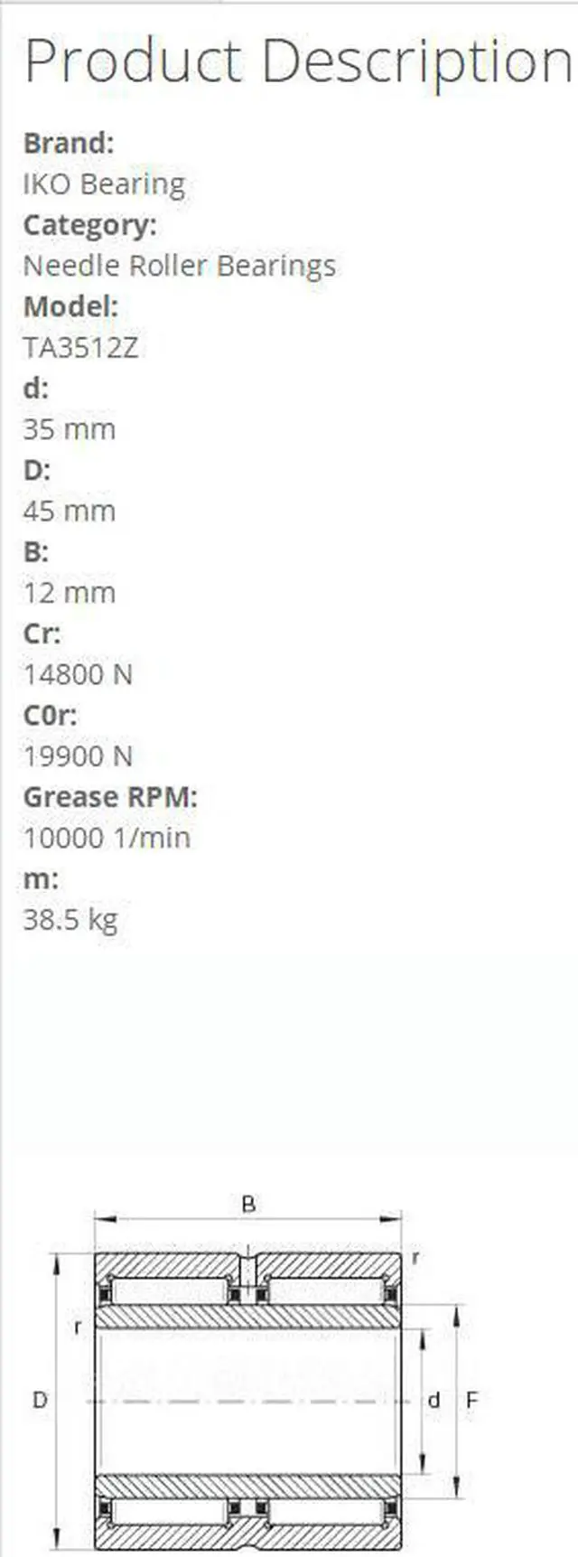IKO TA3512Z Needle Roller Bearings 35x45x12mm