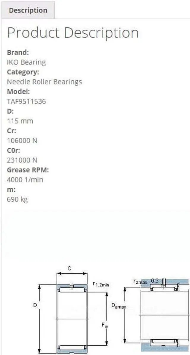 IKO TAF 9511536 Needle Roller Bearings 95x115x36mm