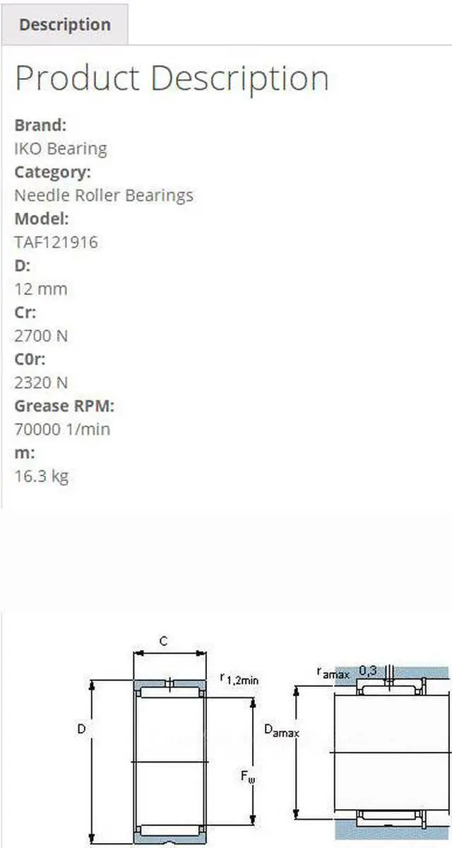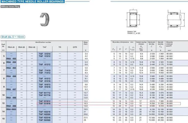 IKO TAF121916 Needle Roller Bearings 19x12x16mm