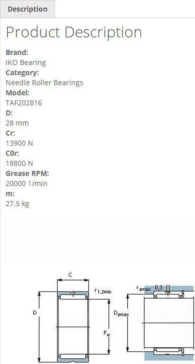 IKO TAF202816 Needle Roller Bearings 28x20x16mm