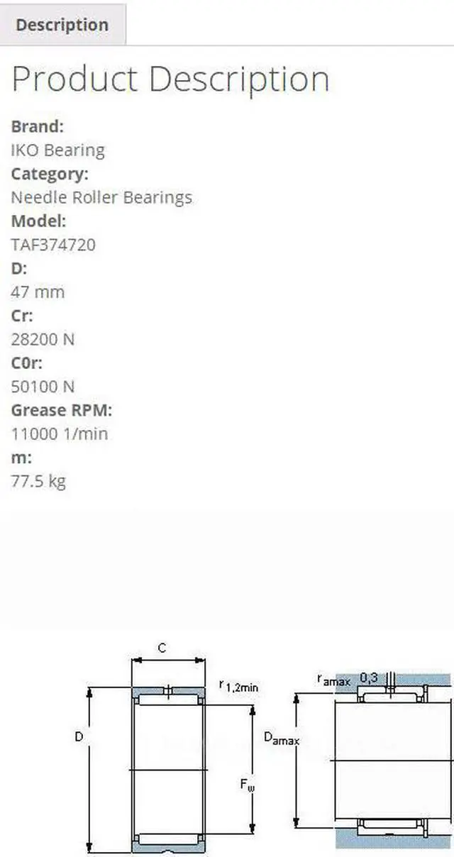 IKO TAF374720 Needle Roller Bearings 47x37x20mm