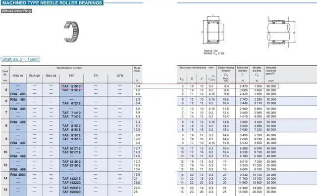 IKO TAF51010 Needle Roller Bearings 10x5x10mm
