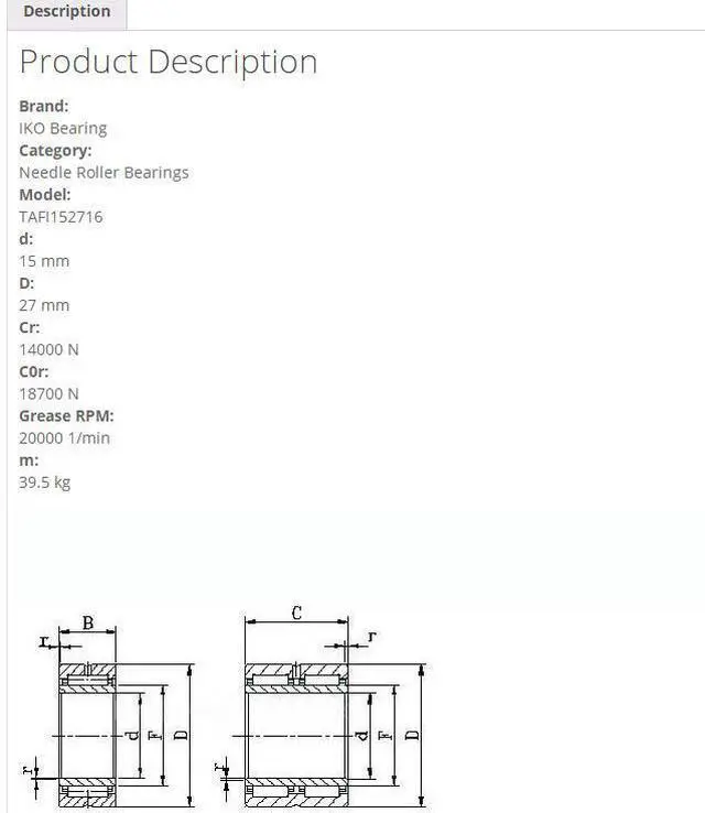 IKO TAFI152716 Needle Roller Bearings,With Inner Ring 15x27x16mm