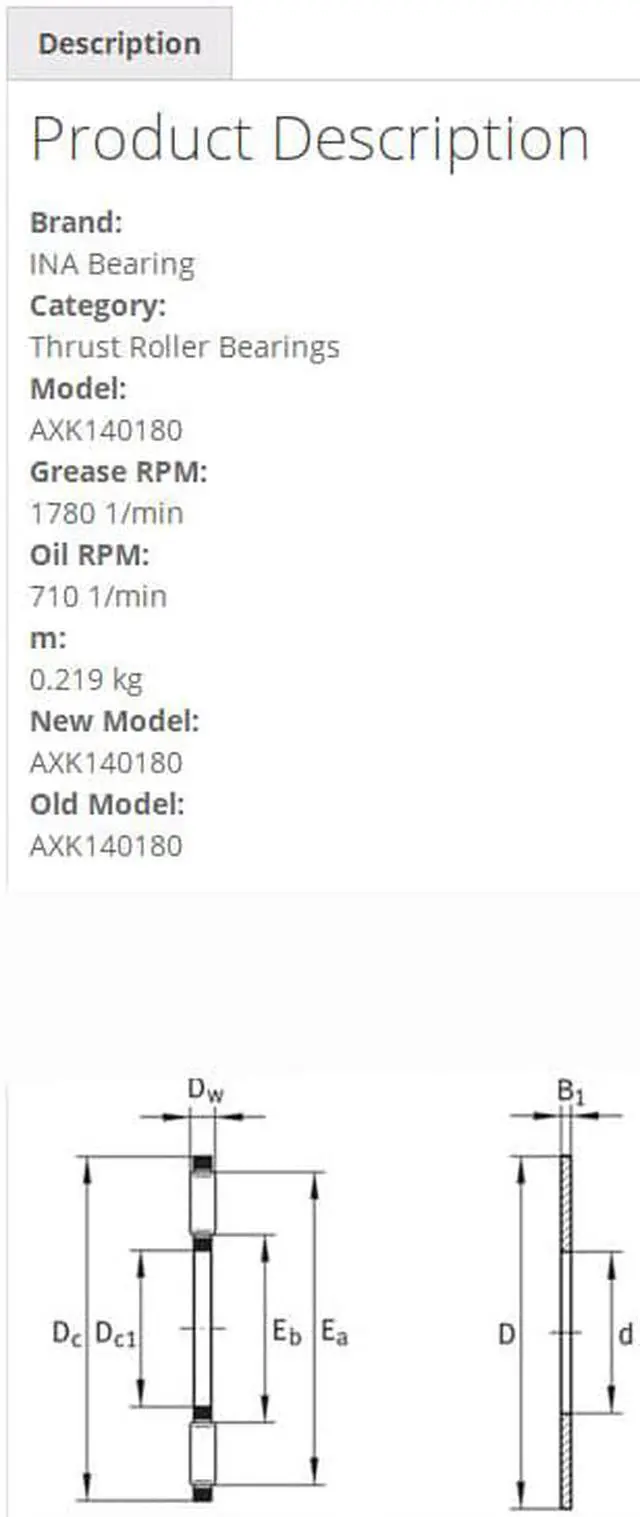INA AXK140180 Thrust Roller Bearings 140x180x5mm
