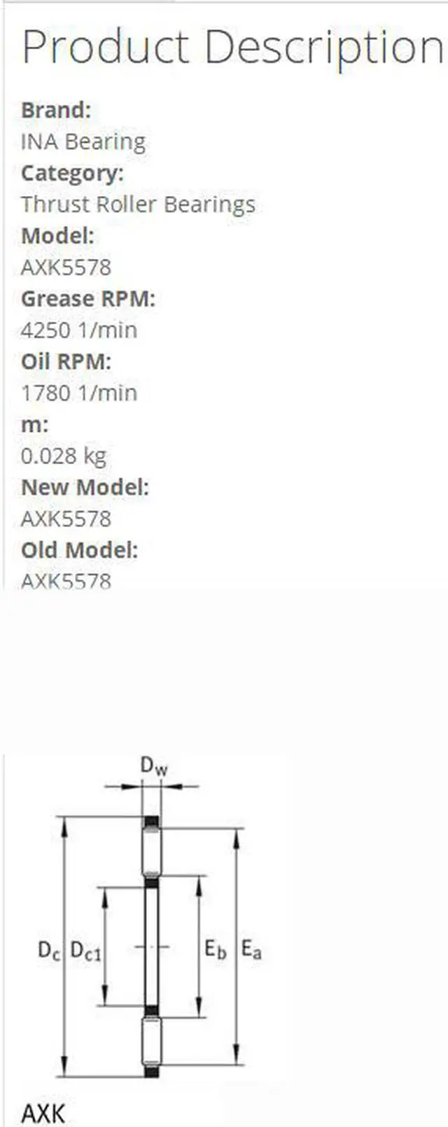 INA AXK5578 Thrust Roller Bearings 55x78x3mm