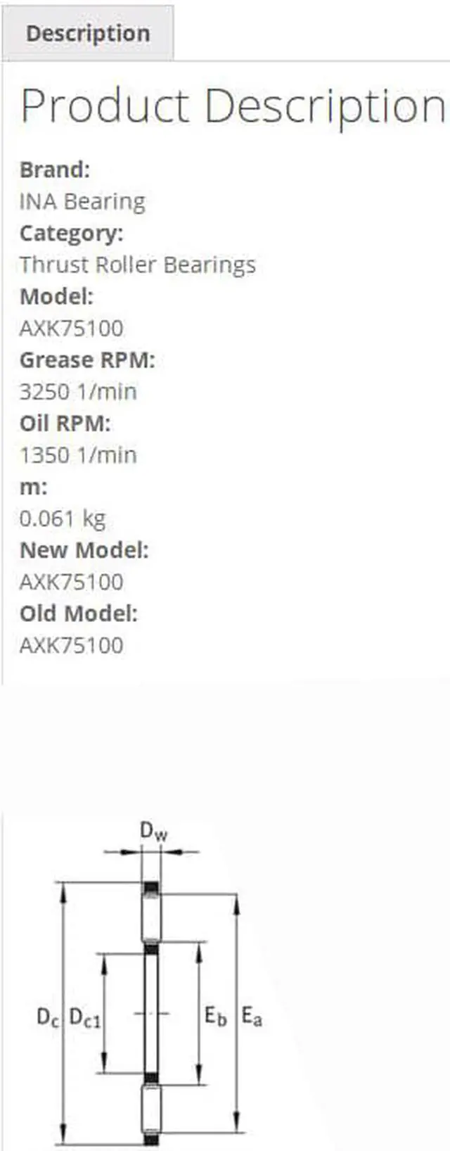 INA AXK75100 Thrust Roller Bearings 7x100x4mm