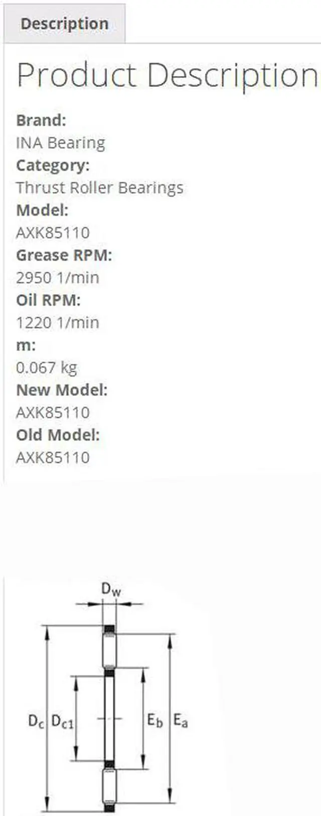 INA AXK85110 Thrust Roller Bearings 85x110x4mm