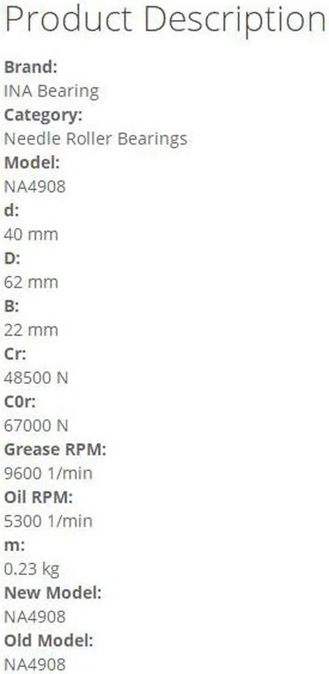 INA NA4908 Needle Roller Bearings-With Inner Ring 40x62x22mm