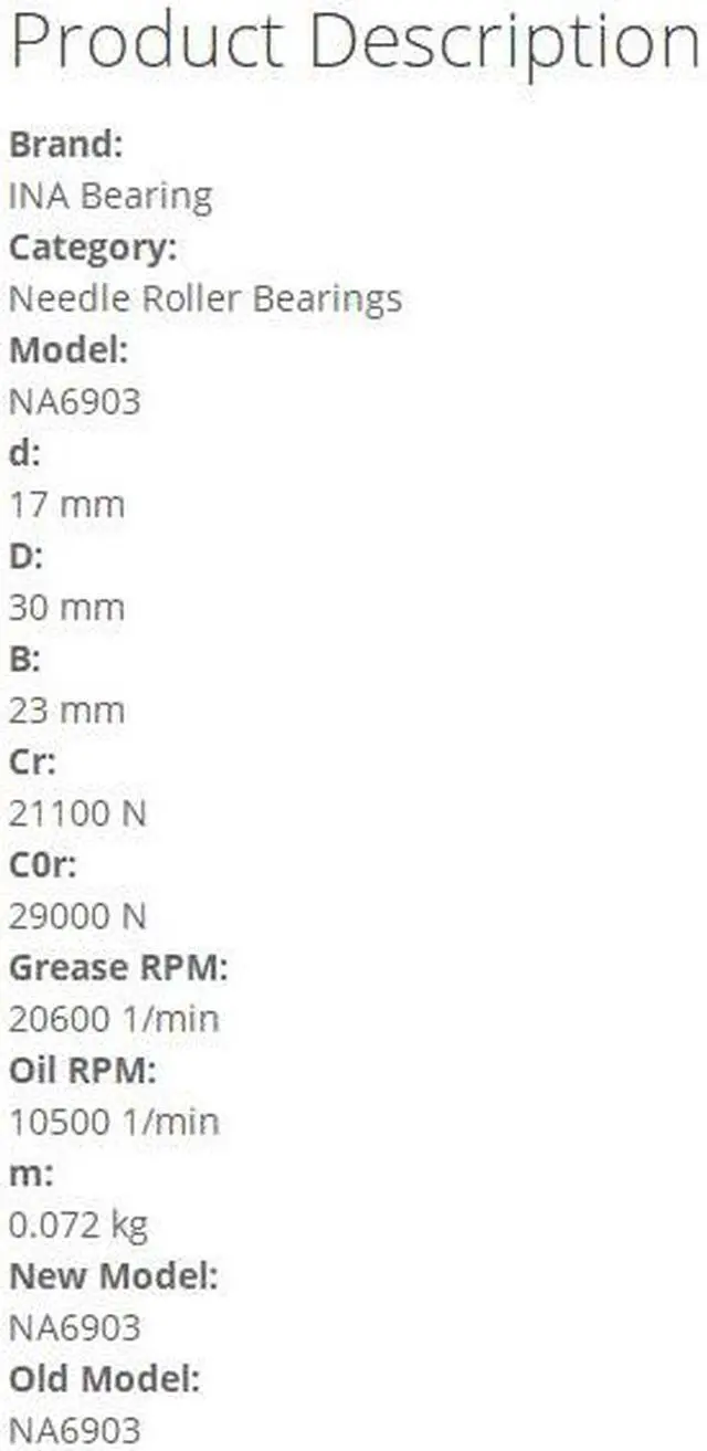 INA NA6903 Needle Roller Bearings-With Inner Ring 17x30x23mm