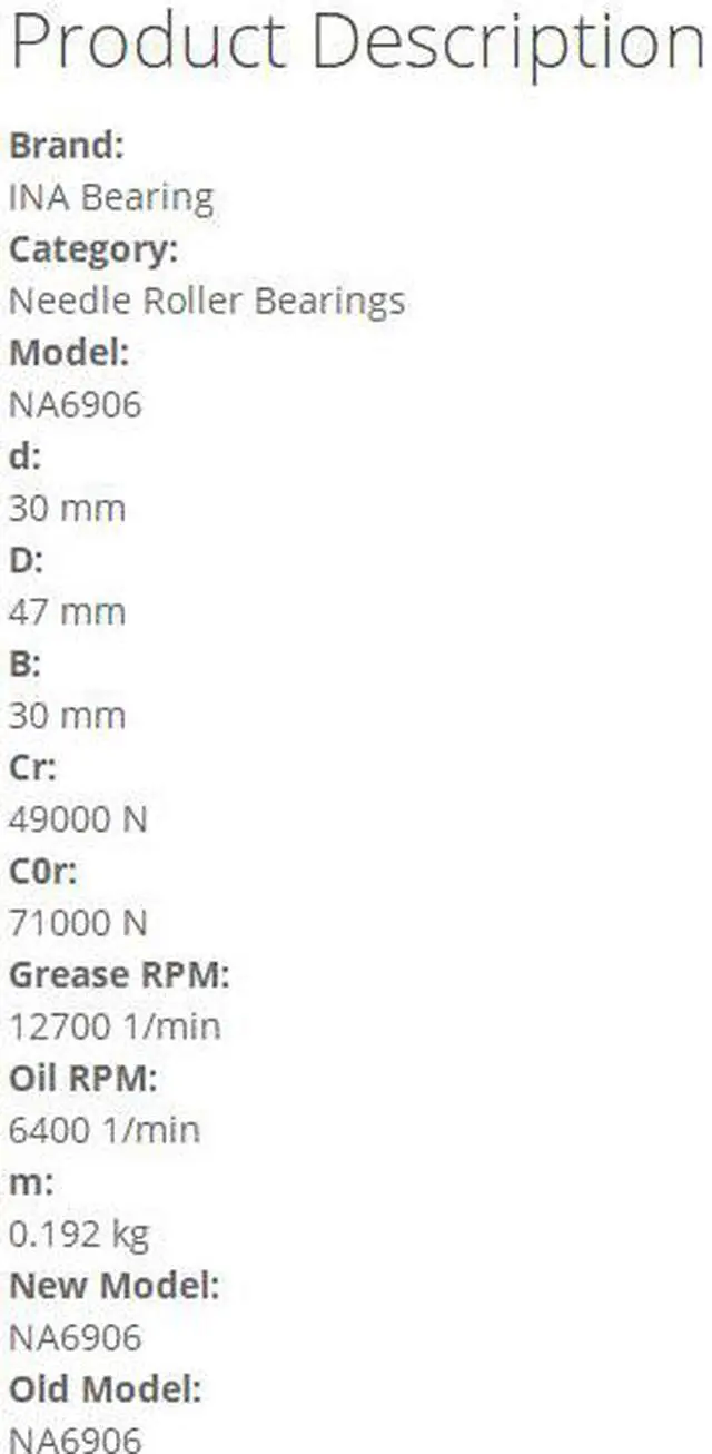 INA NA6906 Needle Roller Bearings-With Inner Ring 30x47x30mm