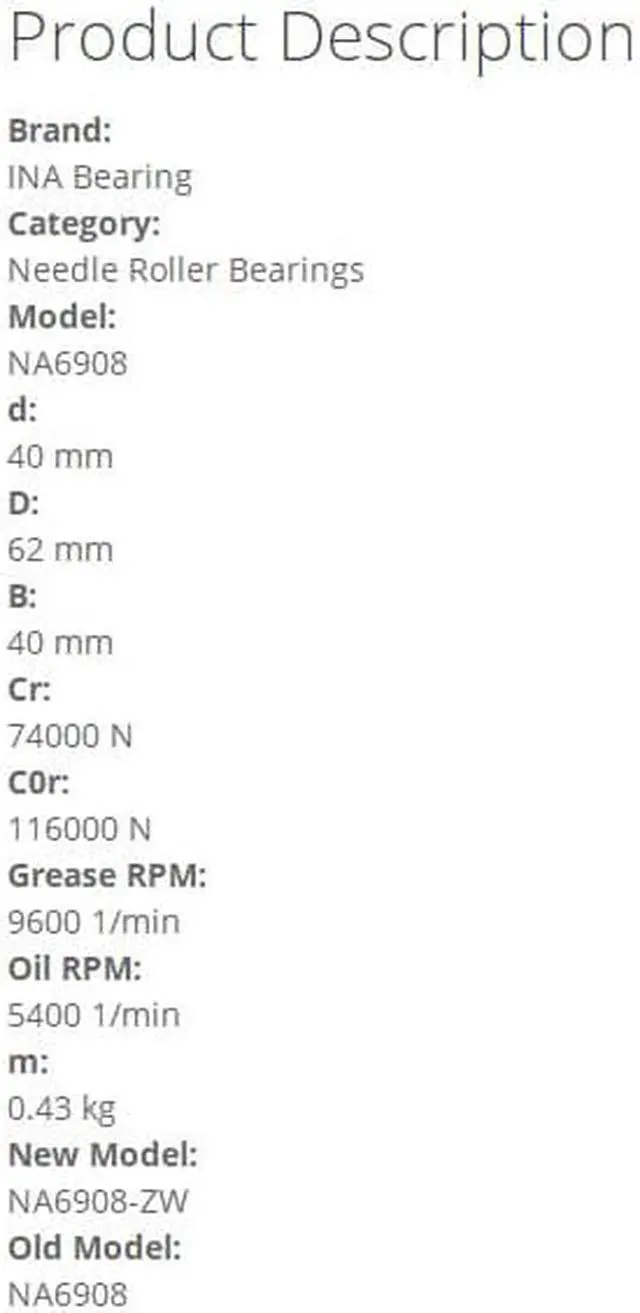INA NA6908 Needle Roller Bearings-With Inner Ring 40x62x40mm