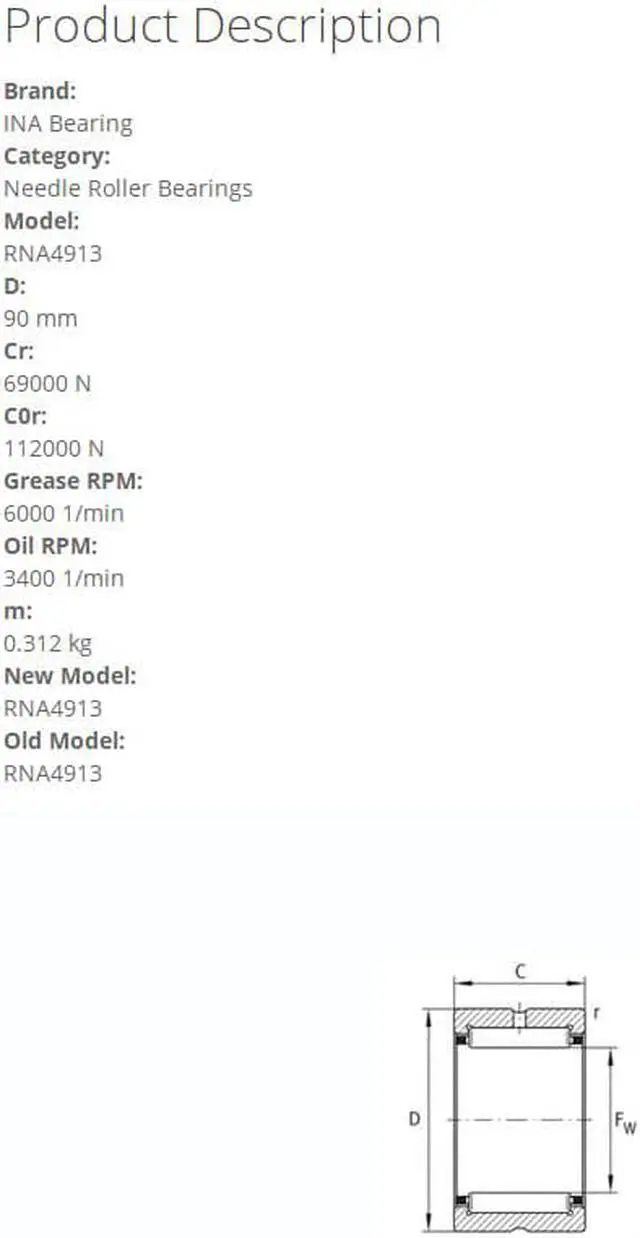 INA RNA4913 Needle Roller Bearings 72x90x25mm