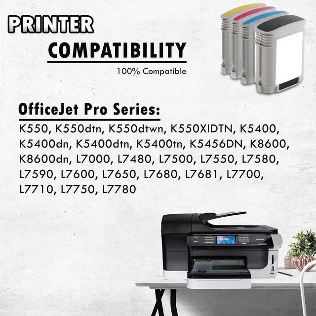 Compatible HP Printer Models: Officejet Pro K550, K550dtn, K550dtwn, K550XIDTN, K5400, K5400dn, K5400dtn, K5400tn, K5456DN, K8600, K8600dn, L7000, L7480, L7500, L7550, L7580, L7590, L7600, L7650, L7680, L7681, L7700, L7710, L7750, L7780.