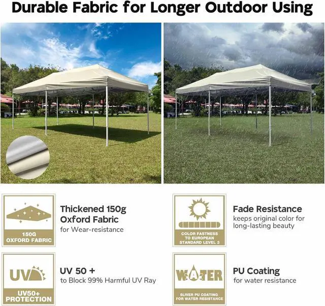 - Durable & Water-resistant - Made of 150g thickened Oxford fabric with silver PU coating for better resistance to wear and tear, the canopy provides excellent water resistance to withstand light rain so that you can enjoy your time outside worry-free