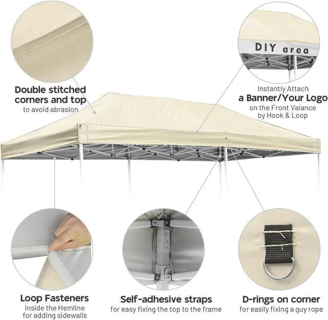 - Easy Installation with Customizable Area - Tool-free installation with self-adhesive straps for easy fixing the top to the frame; D-rings on corner for easily fixing with ropes