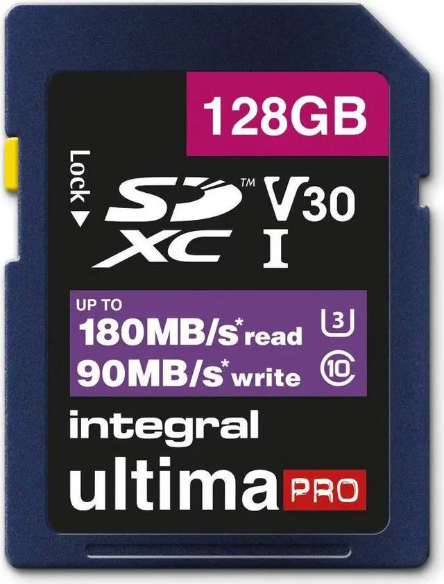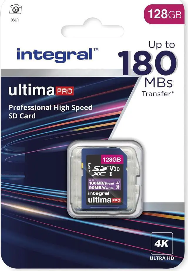 Integral professional High Speed SD cards (SDHC/XC) for when you want to push your device to its limits with up to 180MB/s read and 90MB/s write (256GB, 128GB). Ideal for high-end DSLR and 4K video cameras. Take your photography to the next level shooting hyper-smooth 4K and 4K60 videos and high resolution burst mode quality still images.