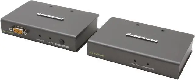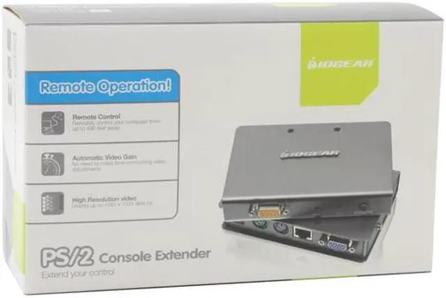 | Features | Allows remote access of up to 500ft away via CAT5e cables Auto Signal Compensation (ASC) helps make installation easy, with no need to configure dip switches Dual console operation - control your system from both the local and remote keyboards, mice, and monitors Easy to use - push button selection between local and remote consoles Plug-n-Play – no need to install any software driver LEDs: Remote,1 Status, 1 On Line;Local, 1 Local, 1 Remote |