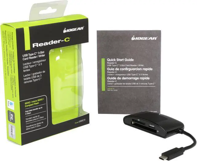 | Features | 3 in 1 USB-C card reader and writer USB 3.1 for maximum speed performance Backwards compatible with USB 2.0 Supports SDXC (up to 2TB), SDHC, SD, CF, High-Speed CF (DUMA), Micro SDXC, Micro SDHC, Micro SD Cards SD, SDHC, and SDXC cards are supported in UHS-I mode up to 104 MB/Sec Plug and Play Hot-Swappable USB Bus Powered |