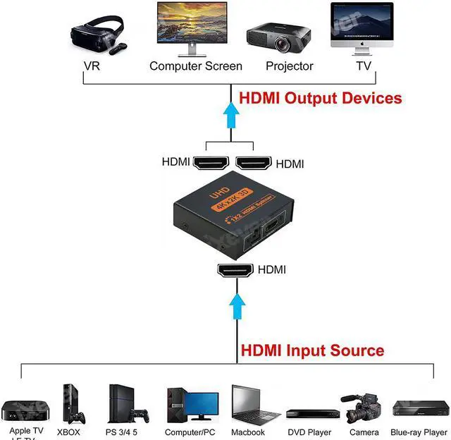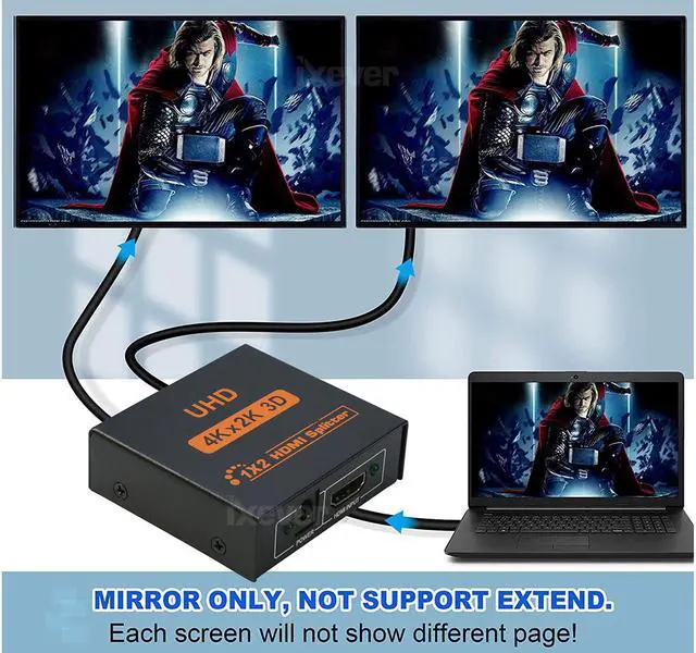 iXever 4K HDMI Splitter 1 in 2 out for amplifying and splitting HDMI signal to two displays at the same time without video quality distortion.