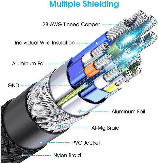 Durable and thickening housing, nylon braided material and Gold-plated connectors to ensure a superior durability and reliability.