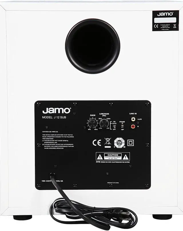 The Jamo J-12-WHT Firing Woofer is an integral part of your home theater system. It provides exceptional bass reproduction to make your listening experience unforgettable, while complementing any room décor with a stylish aesthetic appearance. The Low Pass Crossover and Phase Control lets you easily find the perfect level of bass. Thanks to the included line/LFE inputs, it can work with both old and new receivers.