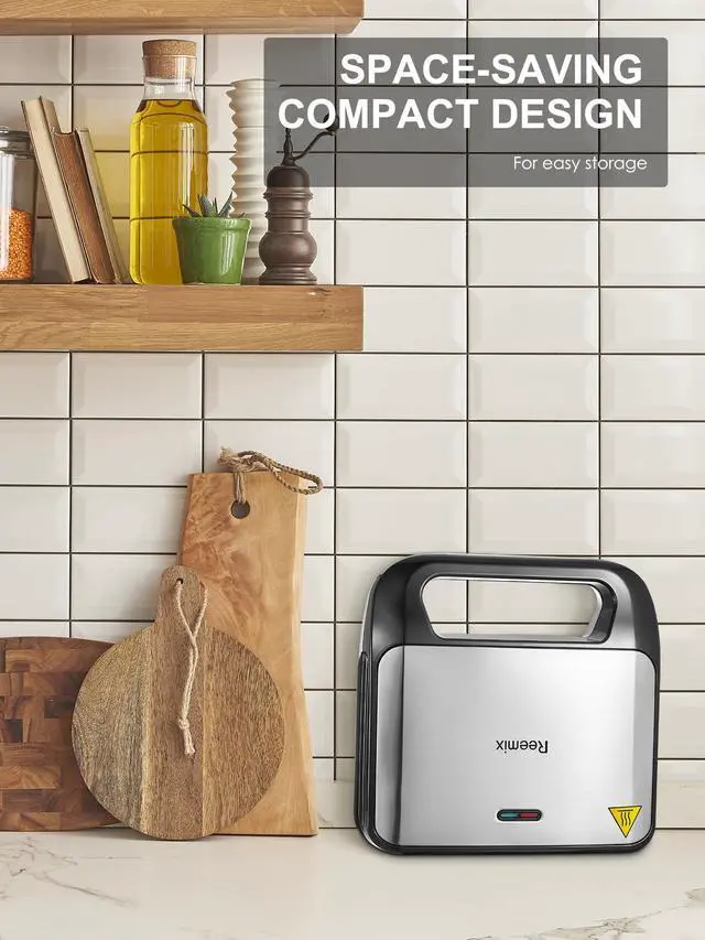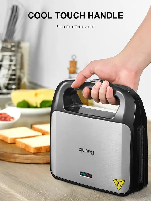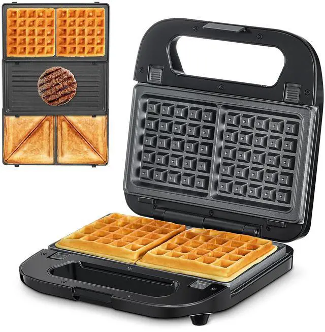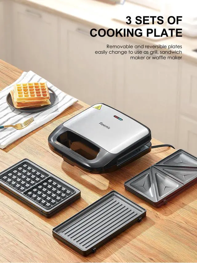 Reemix 3-in-1 Waffle, Grill & Sandwich Maker, Panini Press Grill and Waffle Iron Set with Removable Non-Stick Plates, Perfect for Cooking Grilled Cheese, Tuna Melts, Burgers, Steaks and Snacks, Black