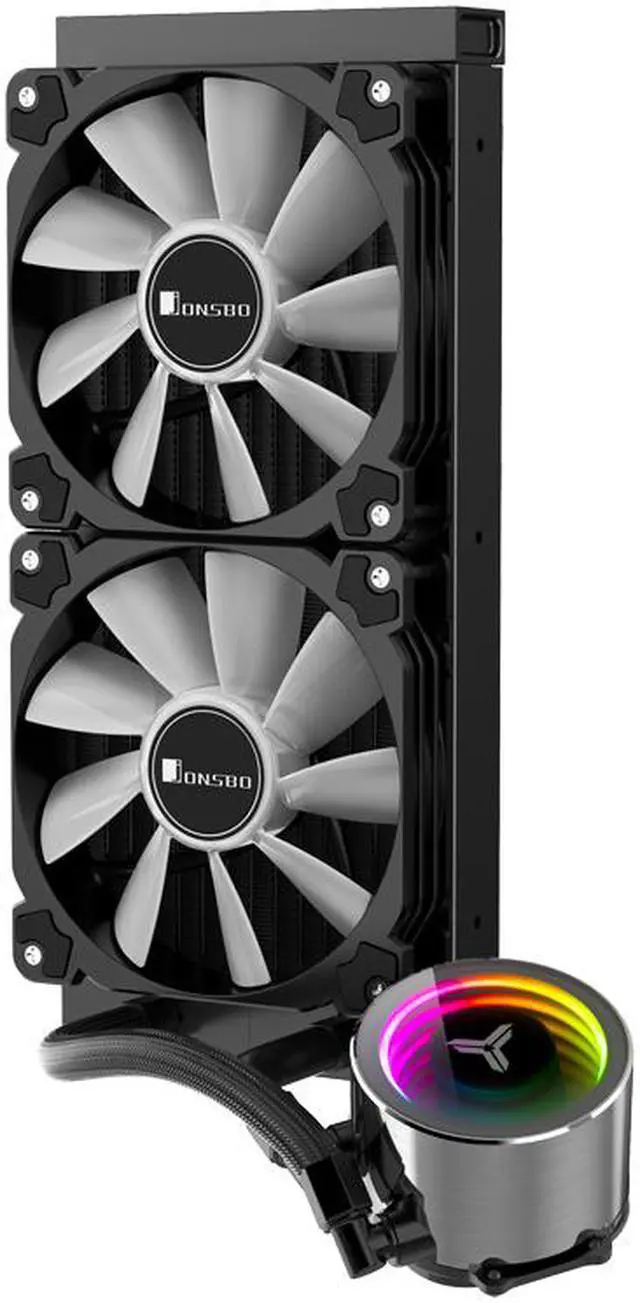 Jonsbo TW4-240 ARGB Controllable series cpu cooling Equipped with a thermally optimized cold plate and low-noise pump design for high performance, quiet cooling.14 Individually addressable RGB LEDs light up the pump head to produce stunning, customizable lighting effects to match your build.Three-year warranty covered and service provided by manufacturer authorized and entrusted Newegg Seller Sennow. Please refer to seller profile for detailed information. Magnetic Levitation Fans: Two 120mm fans deliver improved airflow for extreme CPU cooling performance.