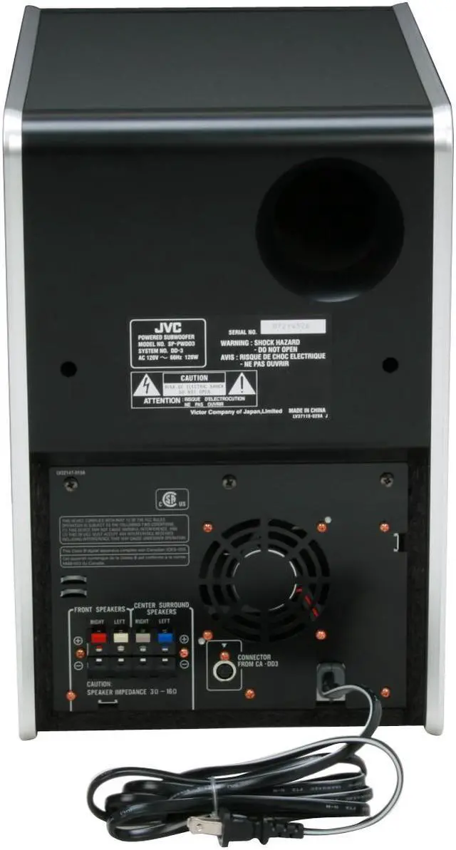 Theater-like Surround Sound Package in One BoxThe JVC DD3 Home Theater System provides everything you need for a theater-like listening experience including a powered subwoofer plus left, right and center channel speakers that employ JVC’s Direct Drive technology, providing an exceptionally wide soundfield so every seat is a good one.