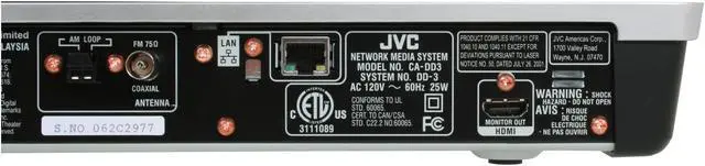 Network Media CenterThe JVC DD3 Home Theater System provides Ethernet connectivity for easy retrieval of music files, movies, digital images and other digital files over your home network.