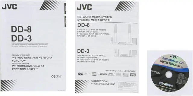 The JVC Sophisti DD3 Network Home Theater System expands your entertainment options dramatically by connecting to your LAN or WAN to offer you instant access to your computer's digital media libraries. This brilliant system includes a full-featured receiver with an integrated 720p upconverting DVD player, a direct-drive center speaker with subwoofer, and stand-mounted left and right front speakers.