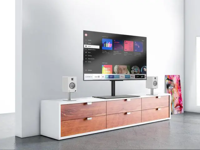 SIMPLE INSTALLATION - This tabletop TV mount is easy to install, saves your walls from damage and features a minimal design that blends seamlessly with your decor.