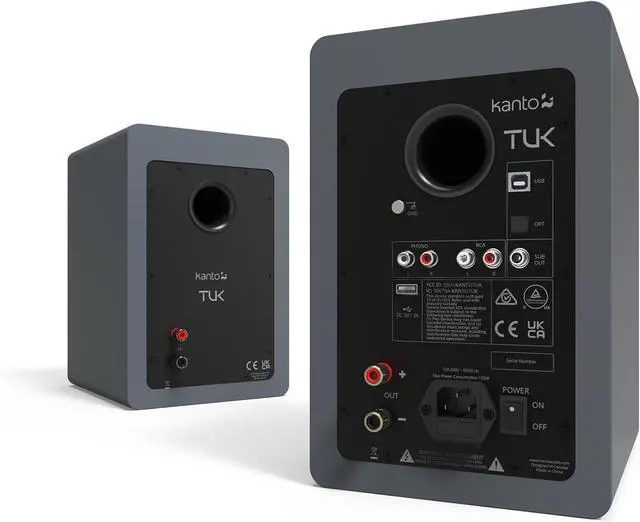 Delivering clarity and performance that put it in a class of its own TUK is designed to push the limits on what a bookshelf speaker can achieve. Fine-tuned with onboard DSP its high-performance AMT tweeters and 5.25 aluminum drivers produce sparkling highs and rich bass bringing life to all your source material. Its active crossover further improves low-end resolution by filtering out sub-80Hz frequencies when connected to a subwoofer. Outfitted with dedicated phono RCA and Optical TOSLINK inputs a built-in USB DAC and headphone amp and Bluetooth 4.2 with aptX HD and AAC codecs TUK provides the flexibility you need to enjoy all your devices.