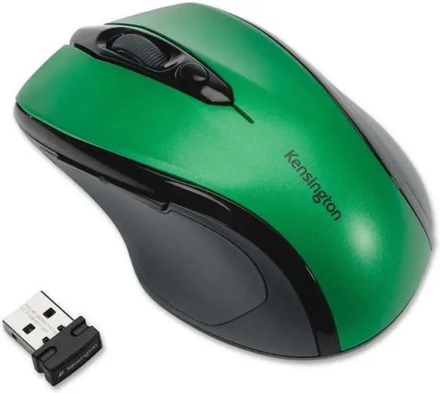 Kensington Pro Fit Mid-size Wireless Mouse - Optical - Wireless - Radio Frequency - 2.40 GHz - Emerald Green - 1 Pack - USB - 1750 dpi - Scroll Wheel - Right-handed Only