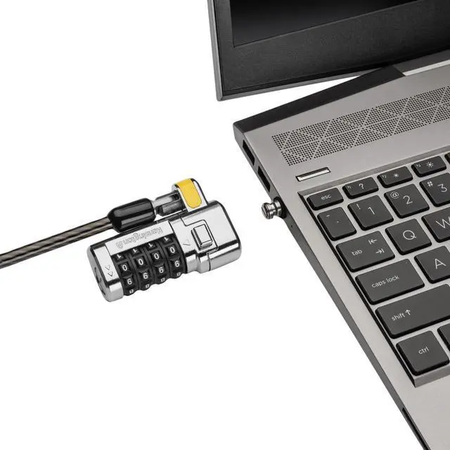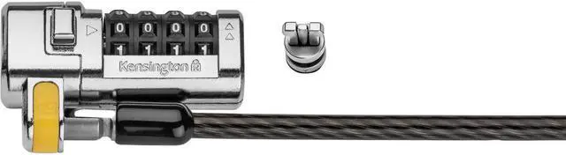 The ClickSafe® Combination Laptop Lock for Nano Security Slot delivers trusted combination lock security to laptops with nano anchor slots. A master coded combination option makes combination and lock management a breeze. Features include ClickSafe® locking technology, a resettable 4-number dial, a cut-resistant cable, a pivoting and rotating head, and a two-year warranty. From Kensington, inventor and worldwide leader in laptop security locks.