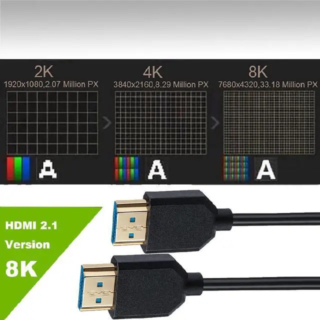 - If HDMI 2.1 cable wants to achieve 8K transmission. You need to make sure that your TV, graphics card or other equipment matches all HDMI 2.1 features. For example, if your device (TV) is HDMI2.0 version, it can only output 4k resolution and 60/30HZ refresh rate.