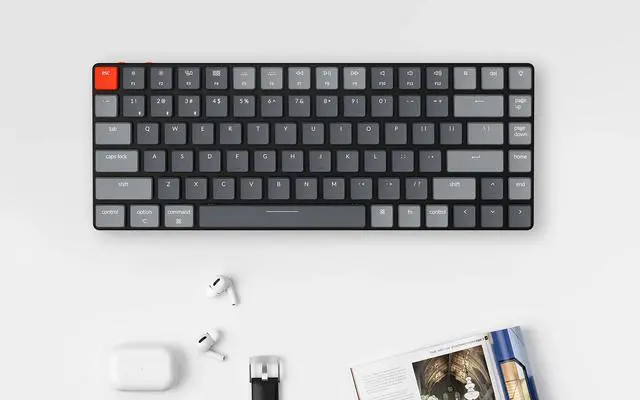 Keychron K3 is a 75% layout (84-keys) RGB backlit compact Bluetooth mechanical keyboard. The redesigned low profile switch is 40% slimmer than conventional switches.