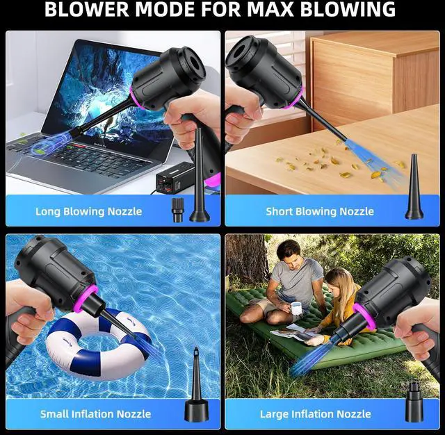 | Special Feature | 4-in-1 Design (Vacuum, Blower, Inflator, Deflator), Brushless Motor, Foldable, Pet Hair Cleaning, Compact, Cordless, Lightweight, Rechargeable |