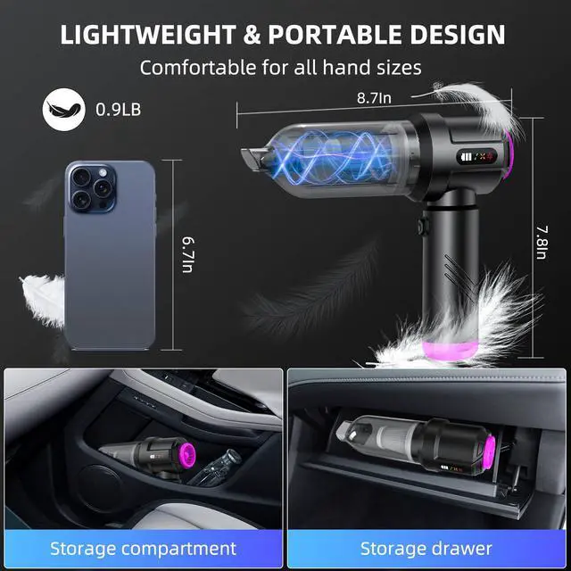 Kimdog Handheld Car Vacuum Portable Cordless 18000PA Rechargeable Vacuum Cleaner Small Air Duster for Home,Keyboard,Pet
