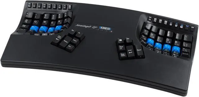 The Advantage2 features low-force Cherry MX Brown tactile mechanical keyswitches, the rubber function keys (found on the original Advantage) have been replaced with Cherry ML low-force, tactile mechanical keyswitches, and our signature home row keys are in the new Kinesis Blue.