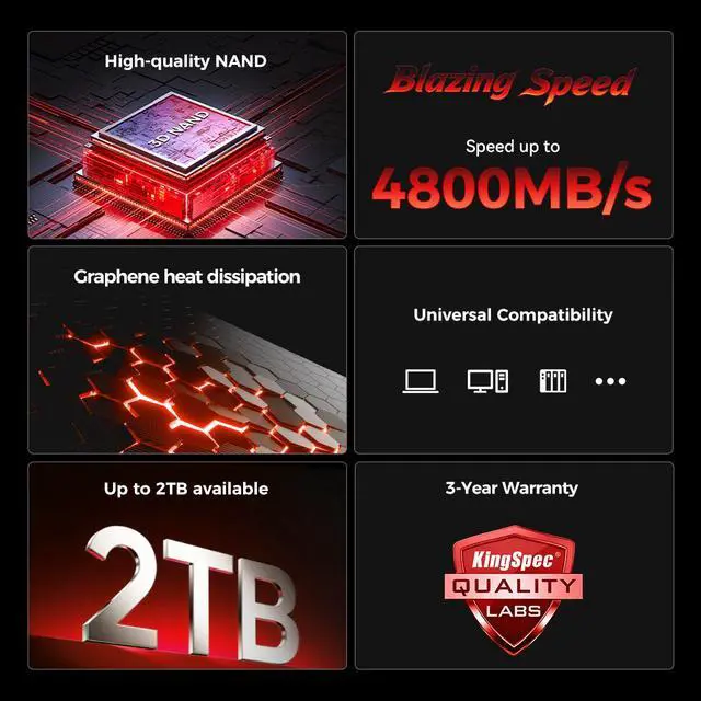 Powered by the PCIe 4.0 interface, this SSD delivers up to 4800MB/s read and 4600MB/s write speeds, enabling lightning-fast boot-ups, game loading, and large file transfers.