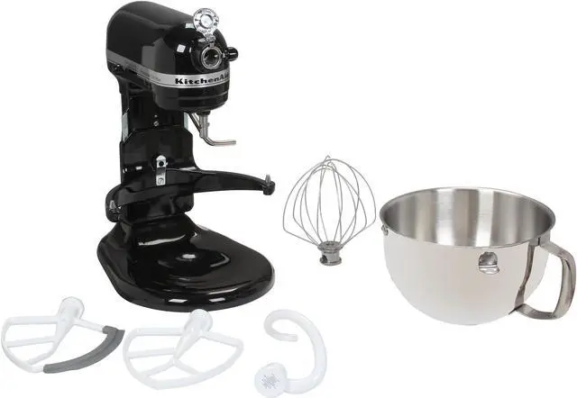 | Features | Direct-Drive, All-Steel Gear Transmission The motor head houses the powerful, high-performance motor and the direct-drive, all-steel gear transmission. Multipurpose Attachment Hub with Hinged Hub Cover Hinged hub cover flips open to reveal the multipurpose attachment hub. The hub powers a variety of attachments that simplify food preparation and add culinary versatility. See the Stand Mixer Attachments section. Commercial-Style Motor Protection This reset feature keeps the motor from overheating by automatically shutting down the mixer when thermal overload is detected. Attachment Knob Knob secures stand mixer attachments to the hub. Bowl-Lift Lever Sturdy bowl-lift lever raises and lowers the mixing bowl. Beater Shaft Flat beater, dough hook, and wire whip accessories mount to the beater shaft. Stainless Steel Bowl Polished stainless steel bowl is dishwasher safe. Speed Control Lever 10 mixing speeds provide versatility for any recipe. Speeds range from a very slow stir to a very fast mix. Bowl-Height Adjustment Screw Screw adjusts the beater-to-bowl clearance. Factory preset. Bowl Support Durable metal arms support the bowl for stable mixing. Locating Pins Pins fit through the bowl brackets to position the bowl on the bowl support. 67-Point Planetary Mixing Action The beater spirals to 67 different touch-points within the bowl for quick, complete mixing. Soft Start Mixing Feature Helps minimize ingredient splatter with gentle acceleration to the selected speed. PowerKnead Spiral Dough Hook Quickly and thoroughly kneads any type of raised dough ? even large quantities. Flat Beater Use the flat beater to mix cakes, quick breads, cookie dough and to mash potatoes. Special design works with unique mixing action to thoroughly mix ingredients. Electronic Speed Sensor The electronic speed sensor maintains the selected speed even when ingredients are added and the density and weight change. |