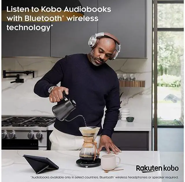 | Specification | Color: Black Connectivity: WiFi 802.11 ac/b/g/n (dual band), Bluetooth wireless technology, and USB-C Processor: Quad Core @ 1.8 GHz Waterproof: IPX8 - up to 60 mins in 2 metres of water Front Light: ComfortLight PRO - Adjustable brightness and colour temperature Customizability: TypeGenius: 12 different fonts and over 50 font styles Supported Formats: 15 file formats supported natively (EPUB, EPUB3, FlePub, PDF, MOBI, JPEG, GIF, PNG, BMP, TIFF, TXT, HTML, RTF, CBZ, CBR) Kobo Audiobooks** **Audiobooks available only in select countries. Bluetooth wireless headphones or speaker required. Languages: English, French, French (Canada), German, Spanish, Spanish (Mexico), Italian, Catalan, Portuguese, Portuguese (Brazil), Dutch, Danish, Swedish, Finnish, Norwegian, Turkish, Japanese, Traditional Chinese |